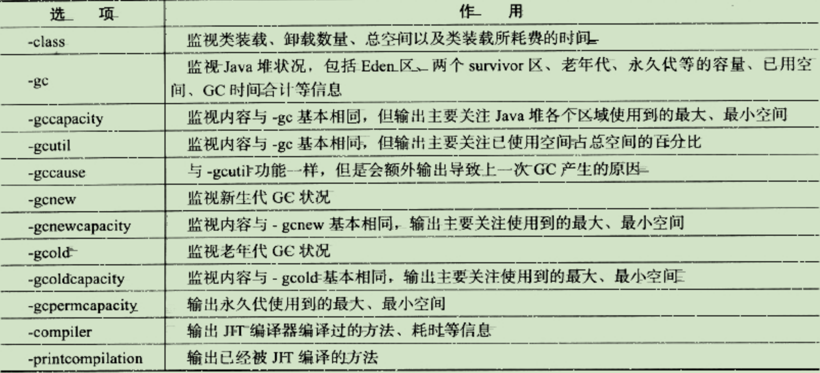 jstat [ option vmid [ interval [ s | ms ] [ count ] ] ]