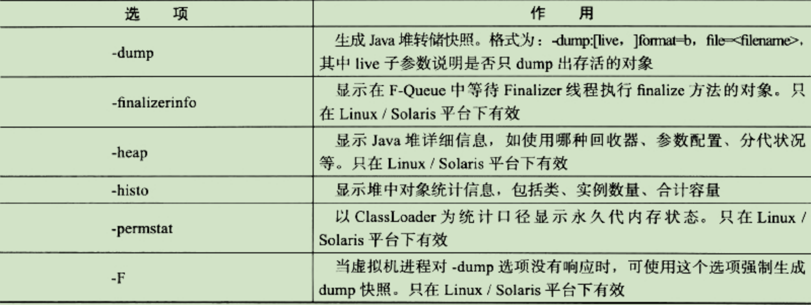 命令格式:jmap [option] vmid