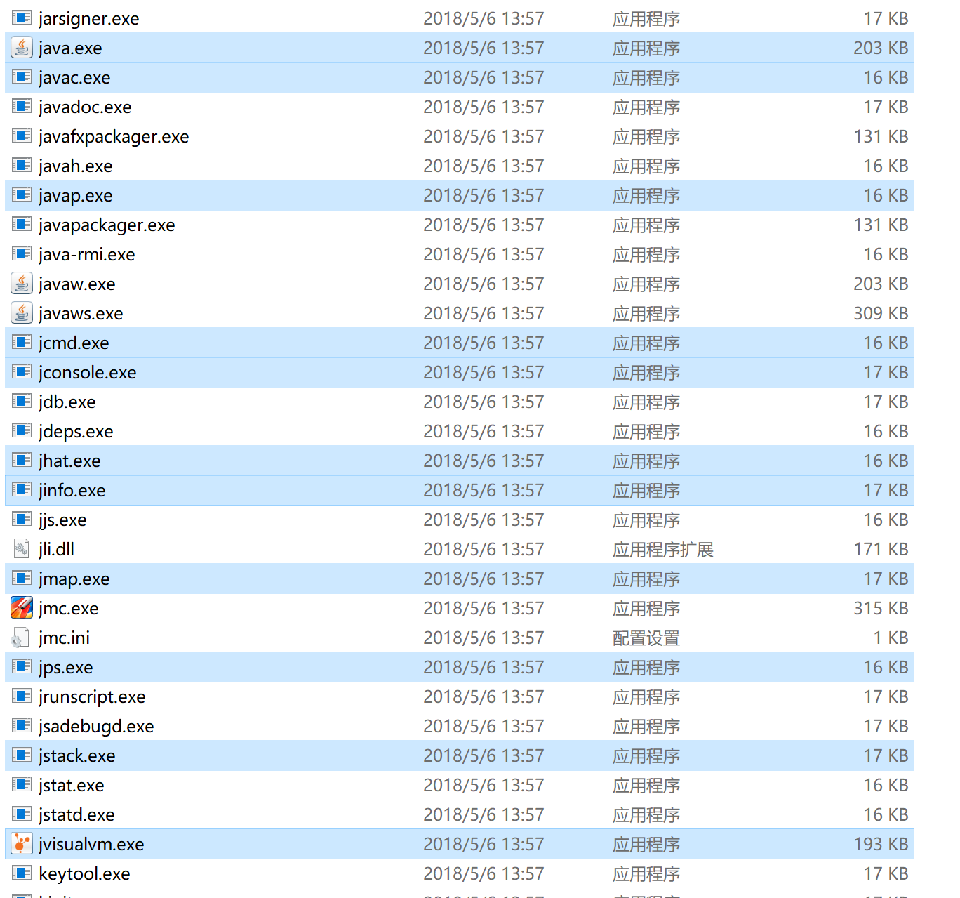 在java_home的bin目录有很多重要的工具,除了常用的java.exe、javac.exe、javap.exe外,还有命令行工具和可视化工具,而且体积相对较小