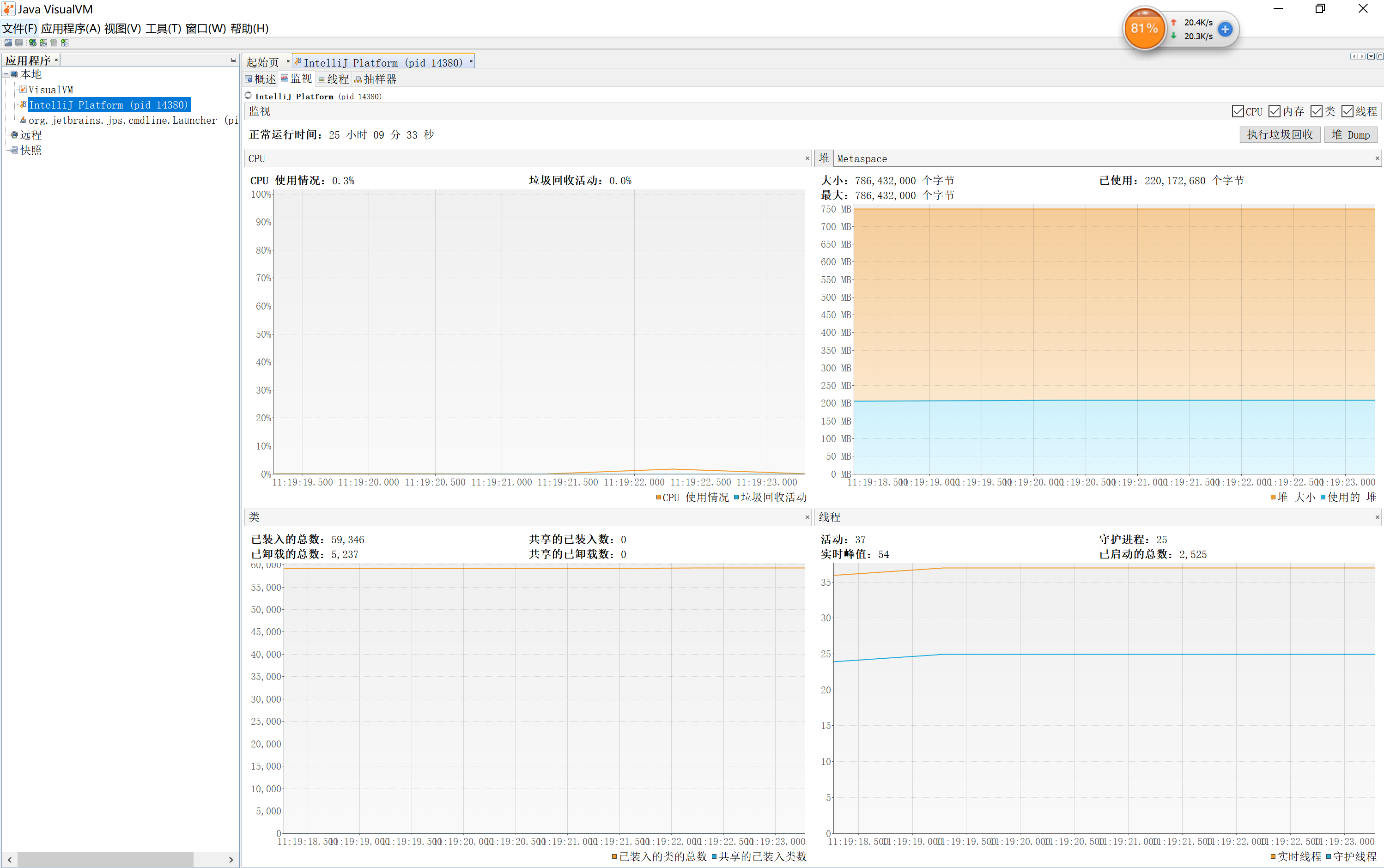 2、监视应用程序的CPU、GC、堆、方法区以及线程的信息(jstat、jstack)