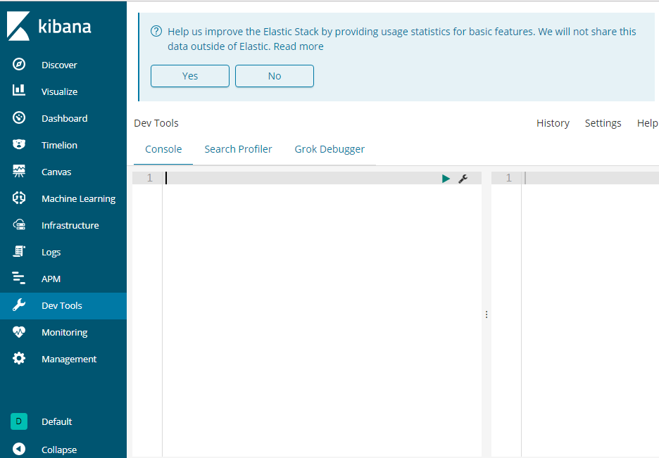 下列命令均在Kibana的DevTools中执行,DevTools中输入关键字有相应的提示,很不错。