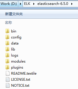注意,如果使用ELK全家桶,官方建议ElasticSearch、Logstash、Kibana三个产品选择同一版本号。截至2018年12月28日,ElasticSearch的最新版本是6.5.4。本篇笔记使用的是6.5.0。下载后放在D:\ELK目录下。