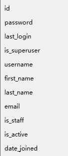 - id: 主键, password 密码, last_login Django自动记录用户最后登录时间,。