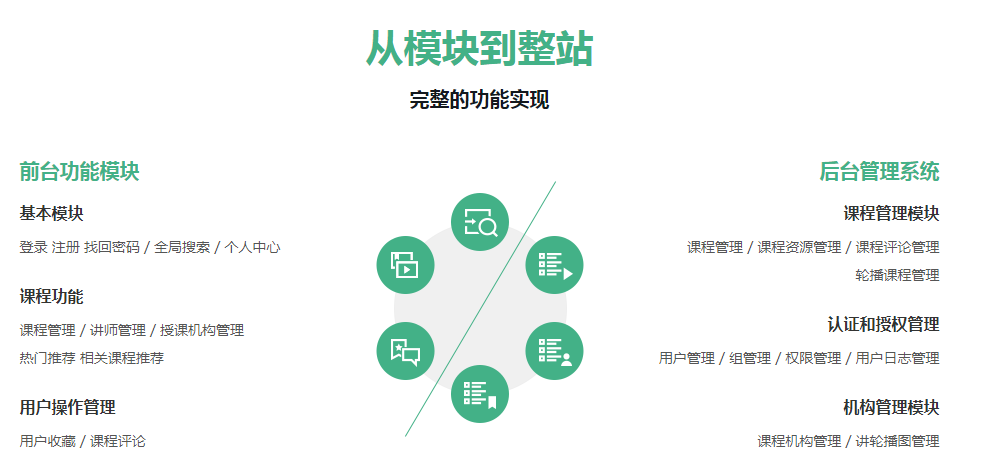 机构–> 左侧:机构首页,机构课程,机构介绍,机构讲师。 - 后台管理系统可以