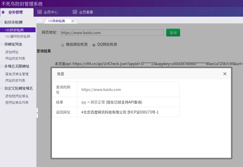 做微信防封技术的肯定会遇到实时检测失效的时候。现在很多技术人员通过服务器去检测微信的域名时候被封,方式是通过微信短网址(不死鸟防封有提供生成短网址的api)。当然这个方式刚开始是没有问题的,当同一个ip每天检测量的在100以内,是没有问题的,但是随着你的业务越来越大,“麻花疼”会封你服务器ip,可能会永久封ip。