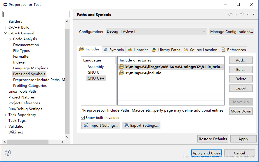 按照一般步骤建立Eclipse C/C++工程,toolchains选择MINGW。