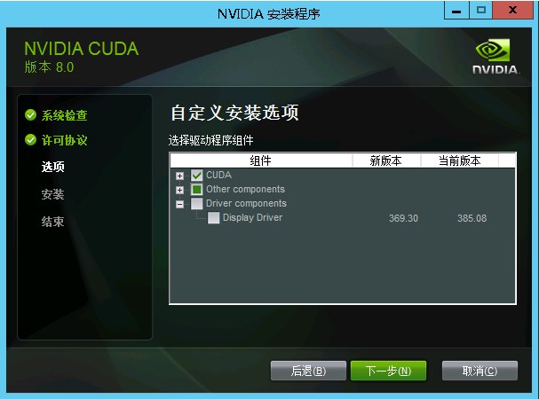 如果之前已安装高版本显卡驱动,安装CUDA时需要自定义并取消最下面的驱动安装,否则也会安装失败。