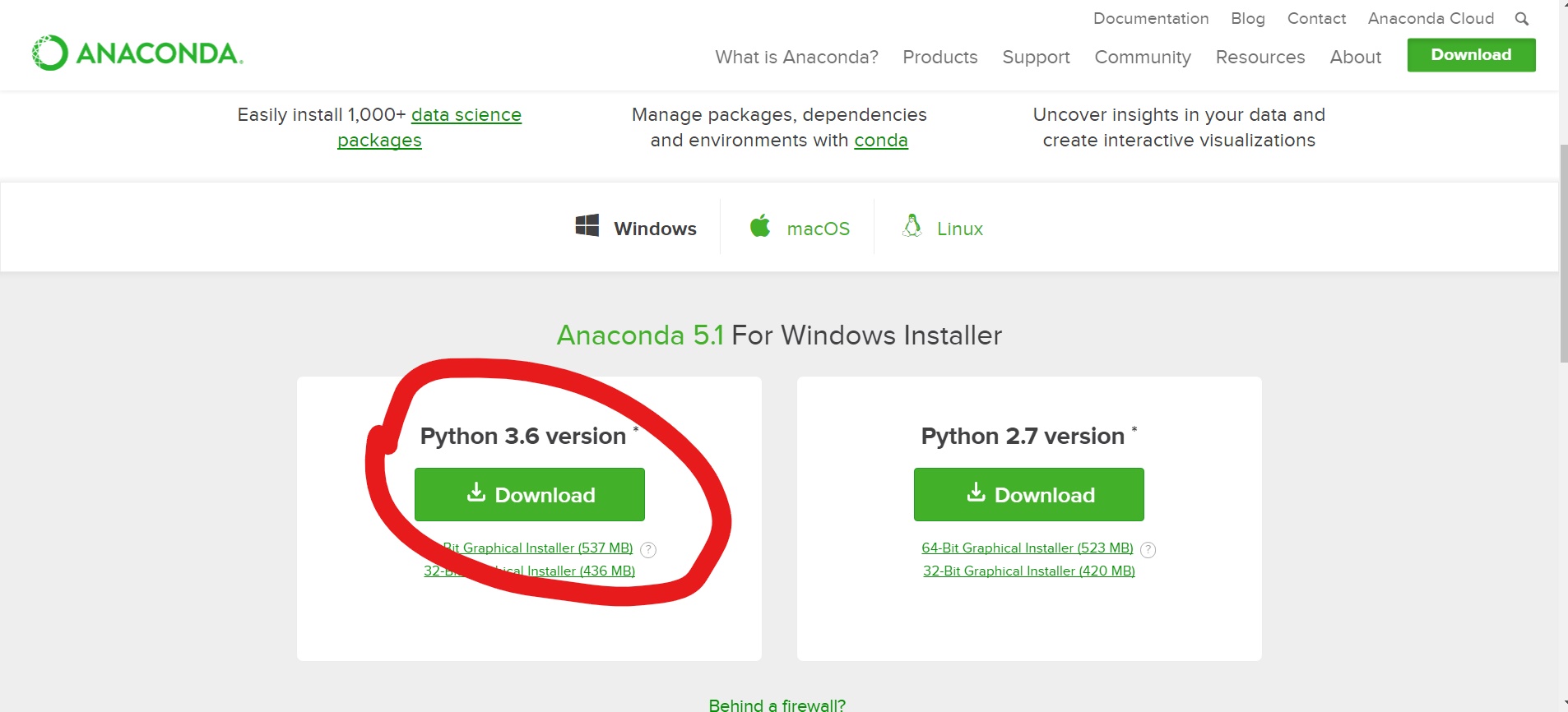 因为都要安装python,pip等包,所以直接安装Anaconda,但是一定要安装3.0版本的,地址如下:https://www.anaconda.com/download/#windows