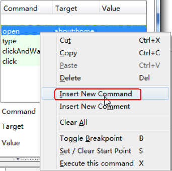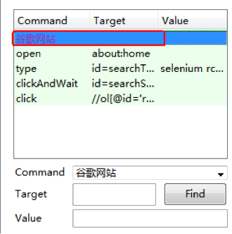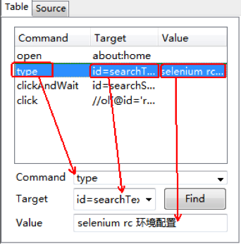 在Table标签下选中某一行命令,命令由command、Target、value三部分组成。可以对这三部分内容那进行编辑。