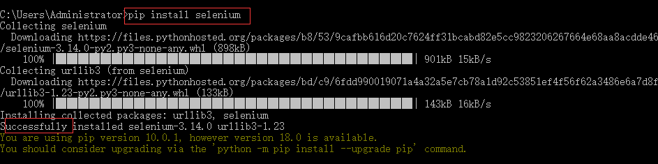 下载安装selenium,只要在命令行输入 pip install selenium会自动安装