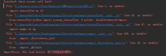 我曾遇到一个问题:在Anaconda prompt里测试tensorflow-gpu安装成功,但是pycharm里面显示ImportError: DLL load failed: 找不到指定的模块。
