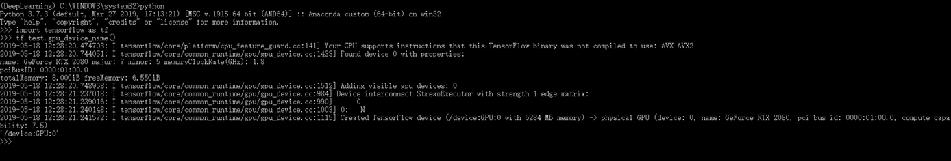 - 在prompt里面输入测试代码:'import tensorflow as tf tf.test.gpu_device_name() ',在测试tensorflow-gpu是否安装成功