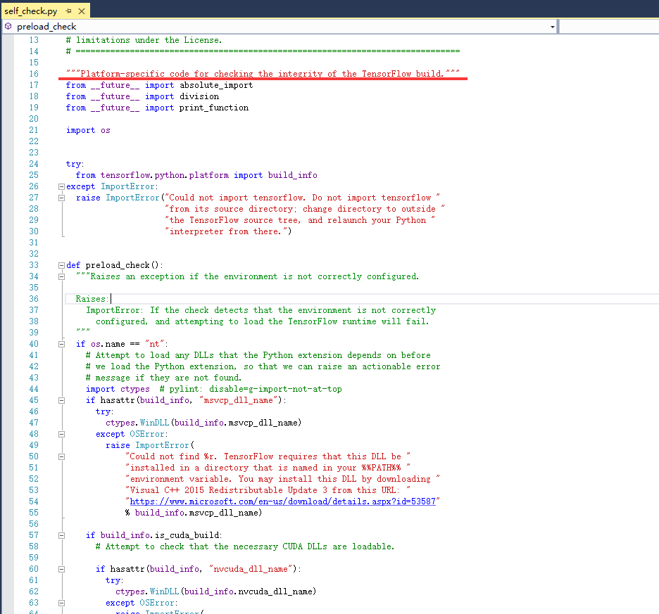 Platform-specific code for checking the integrity of the TensorFlow build.