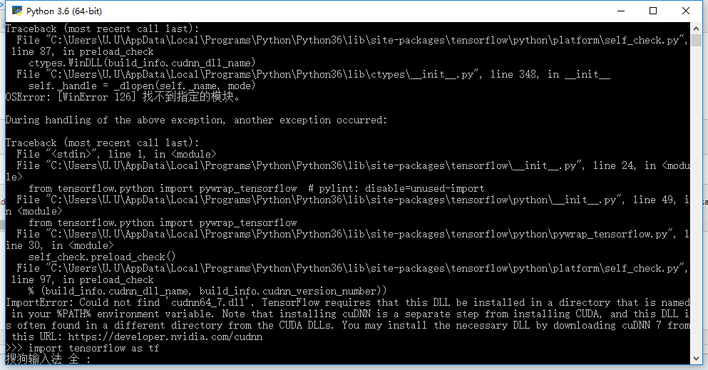 这回报错提示cuDNN没装了,根据链接里的下载地址要登录,选对应CUDA9.0的