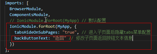 直接在根模块中对 IonicModule.forRoot() 进行相应的配置即可