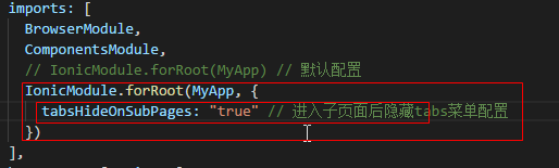 tabsHideOnSubPages: "true" // 进入子页面后隐藏tabs菜单配置