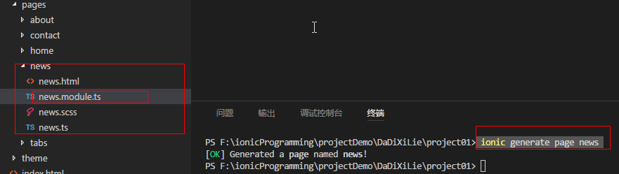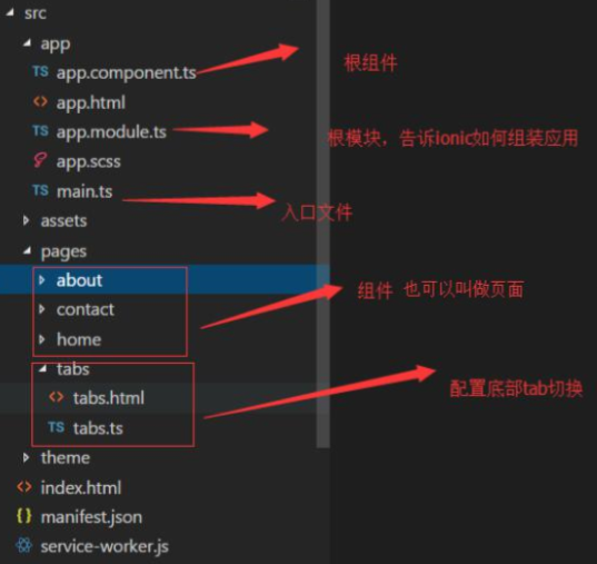pages:页面文件,放置编写的页面文件,包括:html,scss,ts。