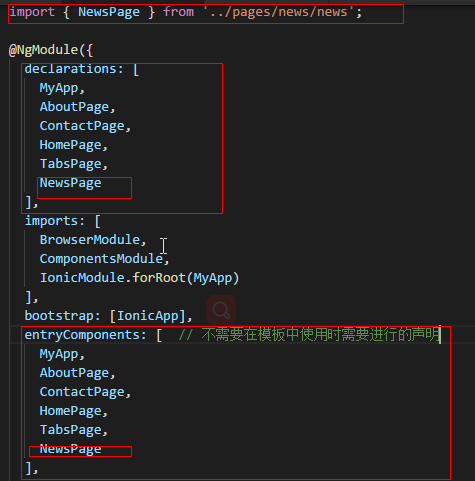 技巧01:新创建的页面必须在跟模块中进行引入和声明后才可以使用