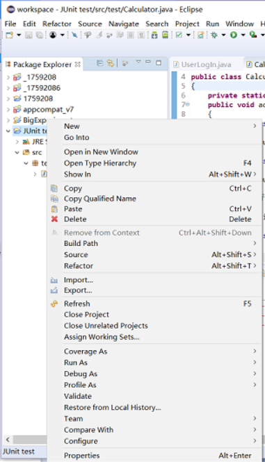 2. 定义测试代码。这也就是JUnit中所谓的TestCase,根据源代码的测试需要定义每个TestCase,并将TestCase添加到相应的TestSuite方便管理。