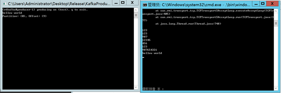 注:控制台生产者和控制台消费者的数据不同是因为我用.net开发了一个生产者所致,后面会讲