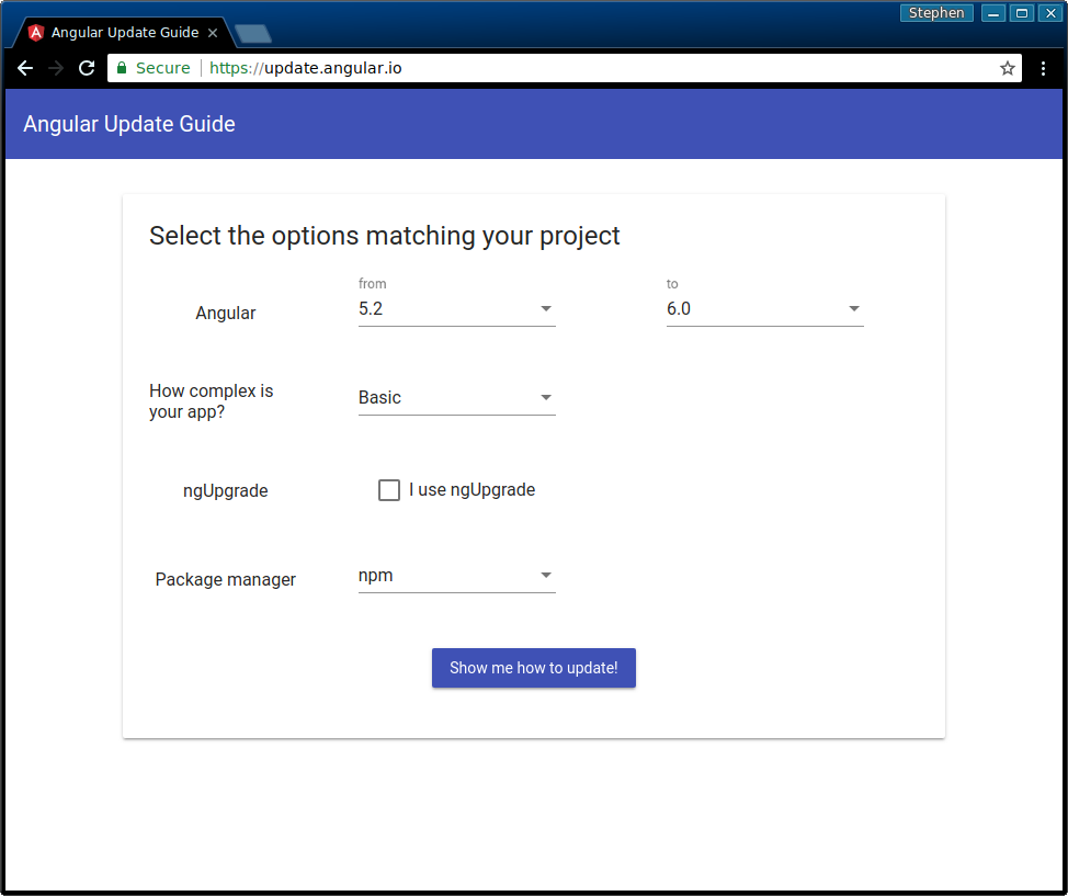 访问 update.angular.io 来得到升级应用的信息和指导。
