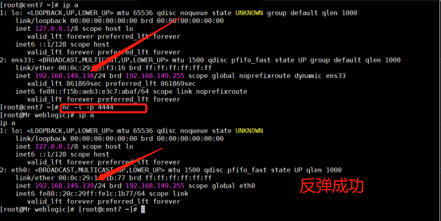 在139机器上使用nc监听端口,在Burp中执行POC后反弹成功