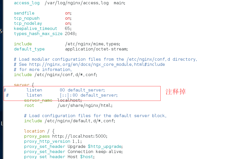 注释默认的80端口,如下