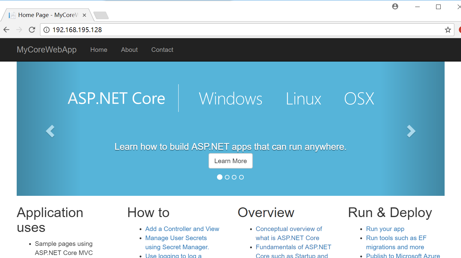 [root@localhost MyWeb]# dotnet MyCoreWebApp.dll