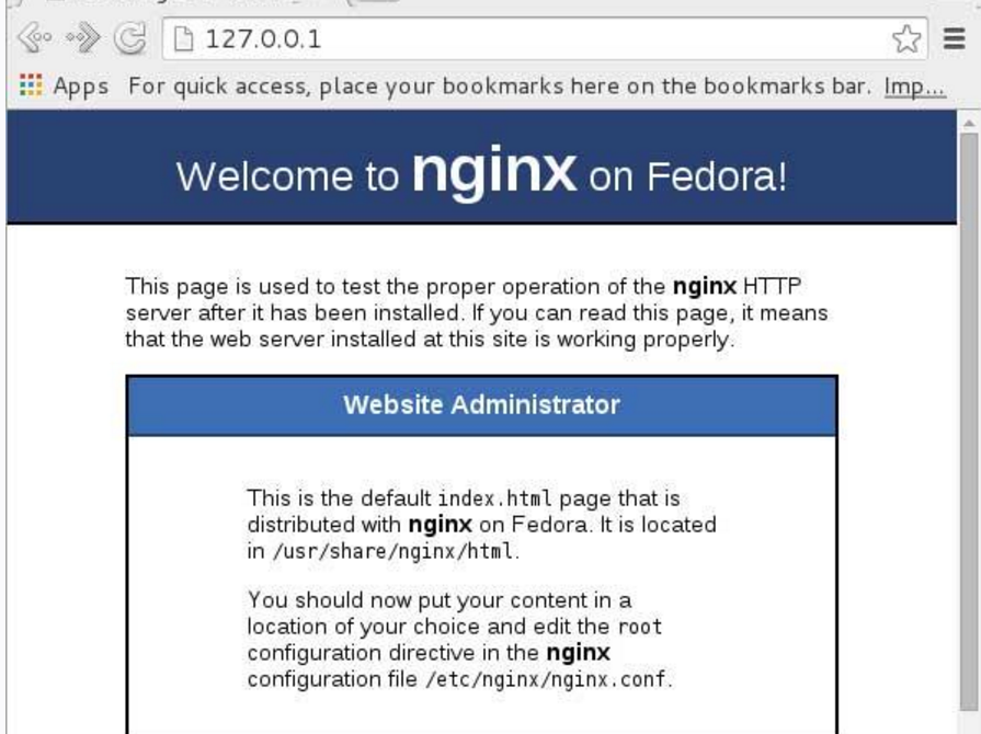 成功完成以上配置后,测试nginx是否可以访问,本地浏览器输入127.0.0.1,成功显示如下