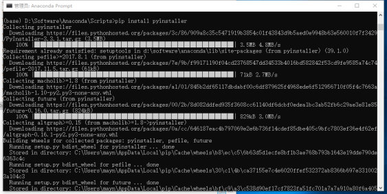 2. 在Scripts文件夹下执行pip install pyinstaller, 安装成功后下载pyinstaller安装包,解压之后放到安装Anaconda的Lib\site-packages下。(参考https://blog.csdn.net/bjxdbz/article/details/73467859)