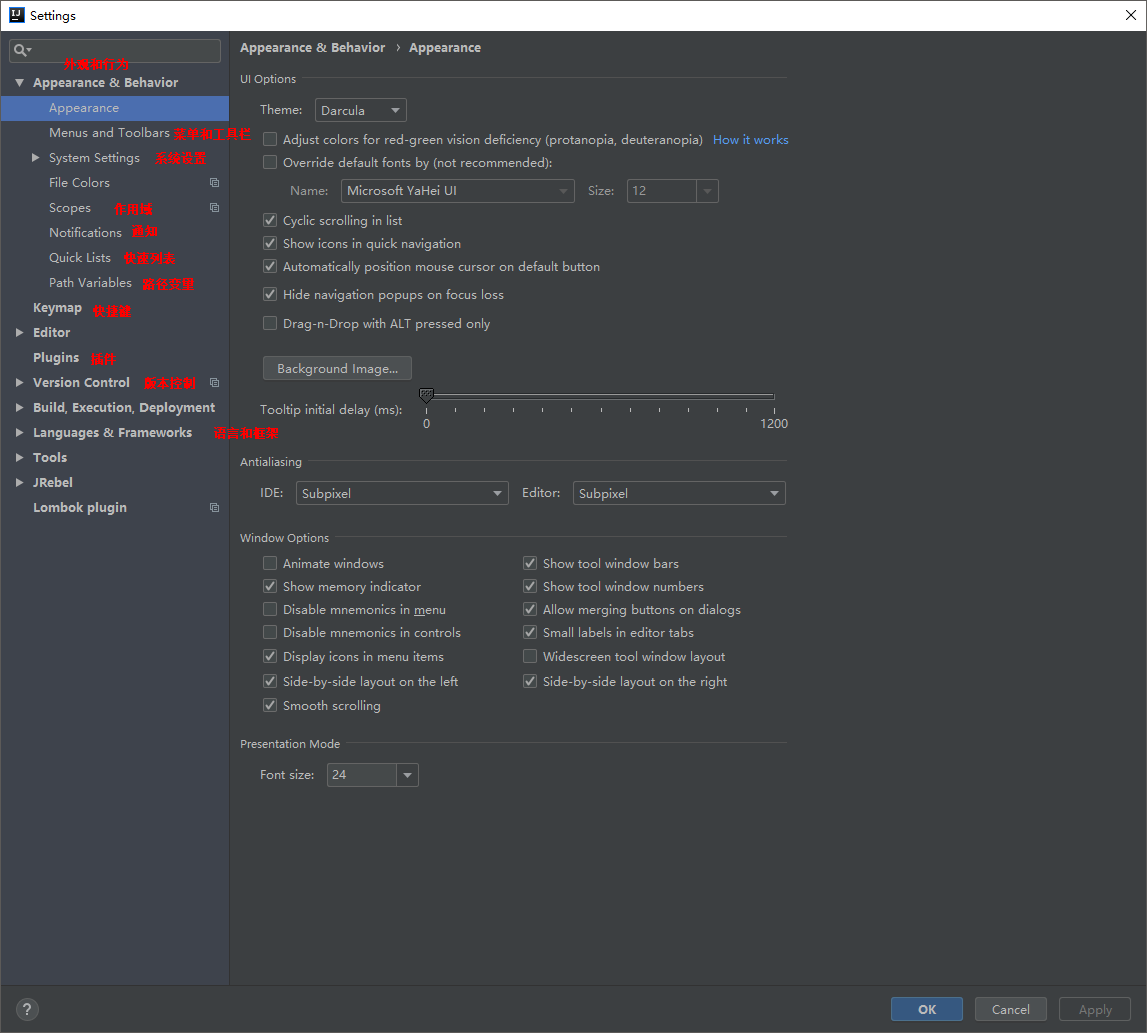 尝试其他方法,->file ->settings ->editors->general->appearance: