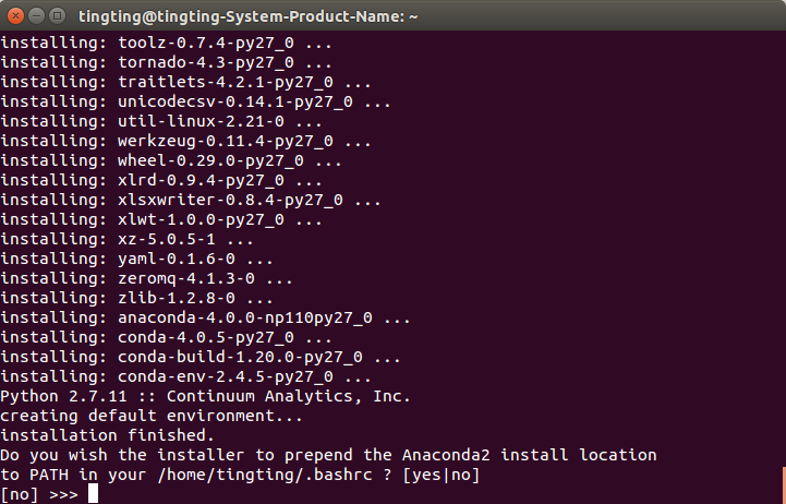$ export PATH=/home/tingting/anaconda2/bin:$PATH