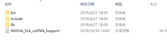 从下载的cudnn7.4.1中找到对应的文件,去覆盖这三个文件。