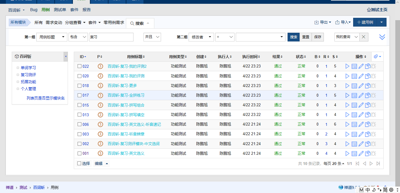 我的模块是复习测评模块,针对这一个模块依据测试结果分析如下: