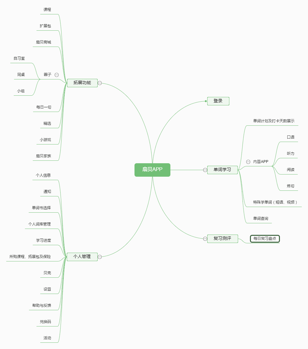 复习子功能【具体说明:百词斩的复习模块下面又划分了许多的模块,扇贝的学习和复习结合联系在一起的】