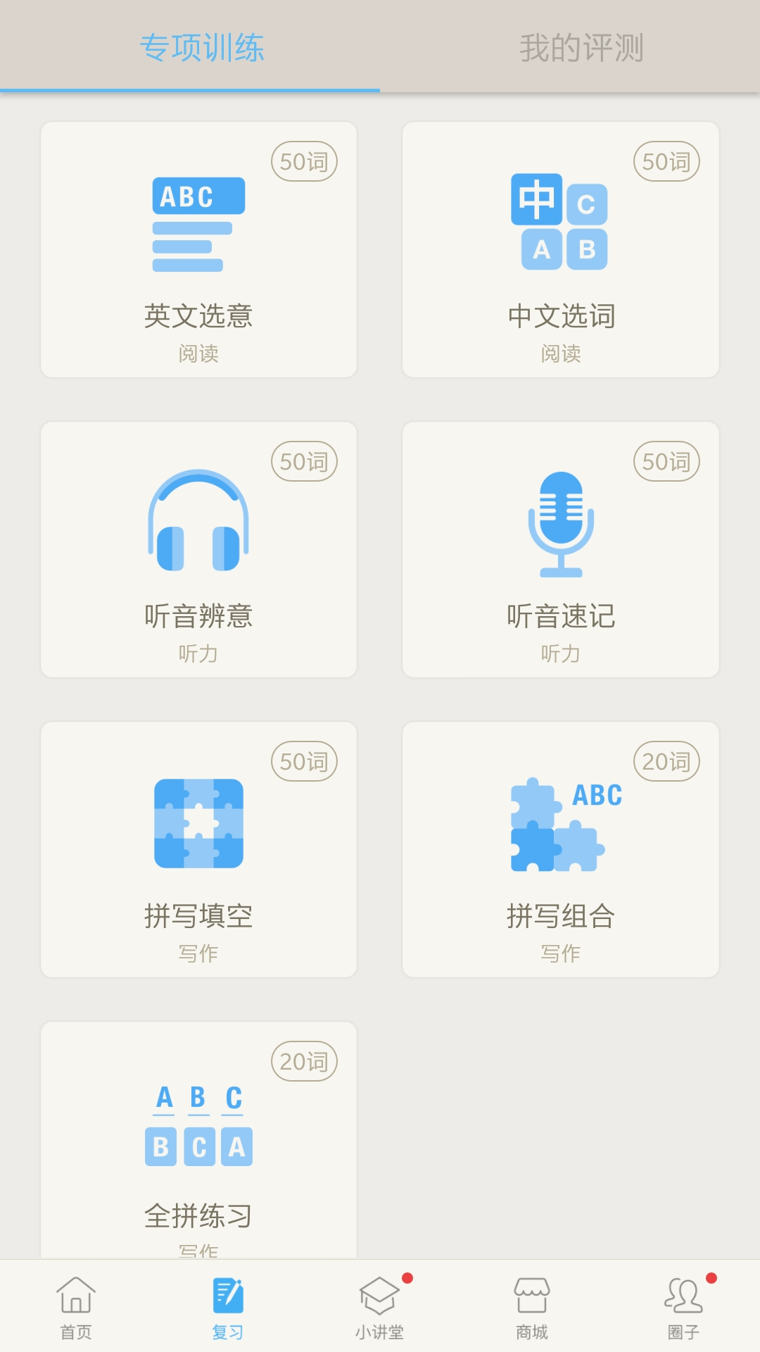 相比较来说,单从复习测评模块来说,百词斩更有优势