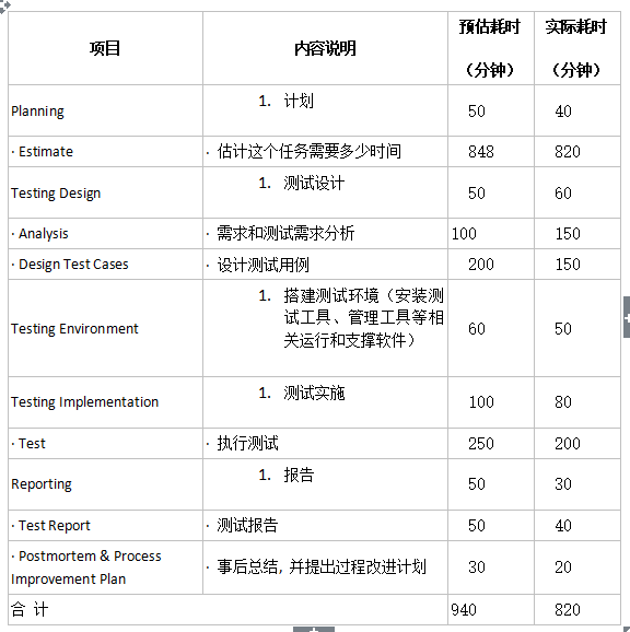 b. 预估项目完成时间,完成测试进度表(项目完成后,需再次记录实际测试工作所花费的时间);