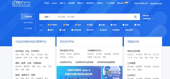 提到文献搜索网站就不能不提中国知网,中国知网主要用于搜索中文文献,中国绝大部分期刊文和博硕士论文都能在上面找到,其也是中国学生最常用的文献检索网站之一。