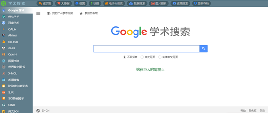 这个网站号称“站在巨人的肩膀上”,不要以为它在吹牛,人家是真的牛!其将Google学术、百度学术、微软学术、Sci-hub、CNKI、SJR、CINII等十七种学术搜索网站汇总,点击任意一个网站名称就能跳转至该网站,极大的节约了在不同网站之间切换搜索的时间和精力。