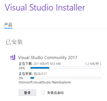 | 安装Visual Studio2017 | 6.12 12:28-13:30 | 62(安装) |