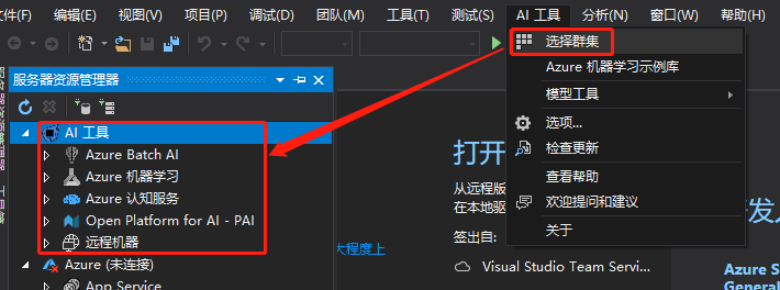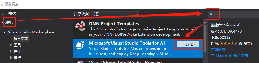 - 安装插件:VS Tools for AI(VS2017中操作)