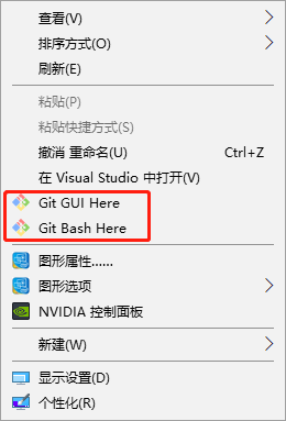 在桌面点击鼠标右键,出现红框中内容,及视为安装git成功,恭喜恭喜。