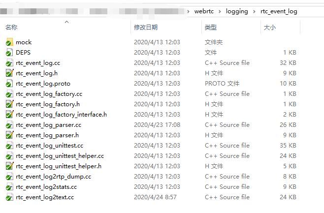 rtc_event_log核心代码集中在webrtc\logging\rtc_event_log文件夹下: