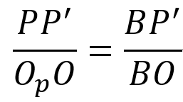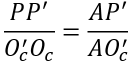 由于(投影中心到参考平面距离)则由等比关系式可得: