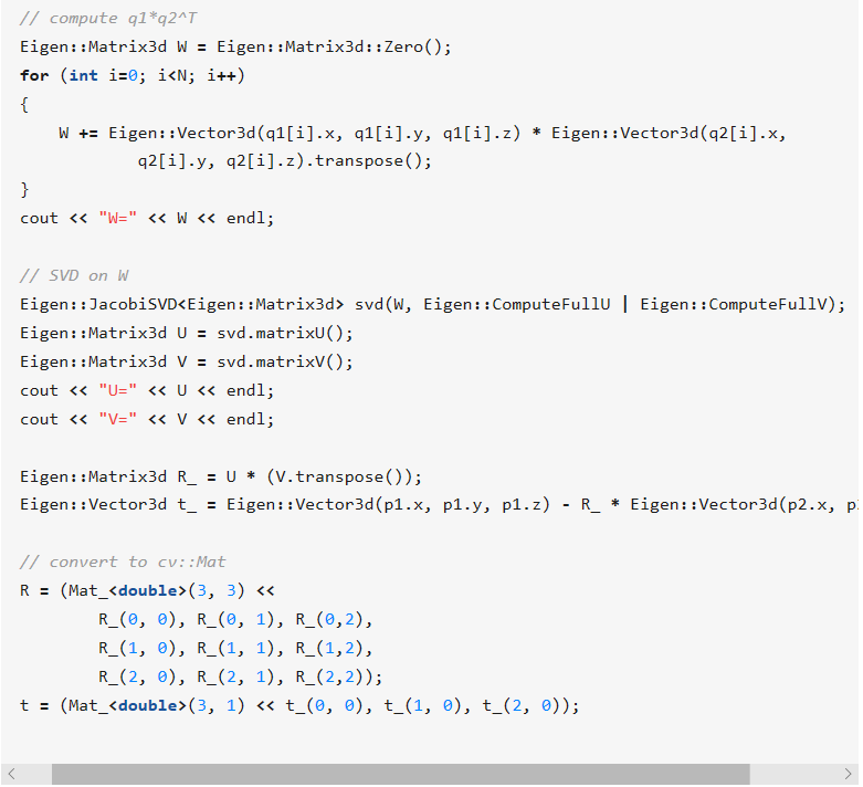 以下求解 ICP 的代码来自:高翔,视觉SLAM十四讲。