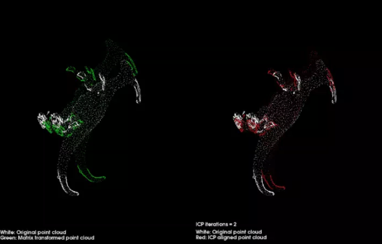 ICP 算法的第一步就是找到 Source 点云与 Target 点云中的对应点(corresponding point sets),然后针对对应点,通过最小二乘法构建目标函数,进行迭代优化。