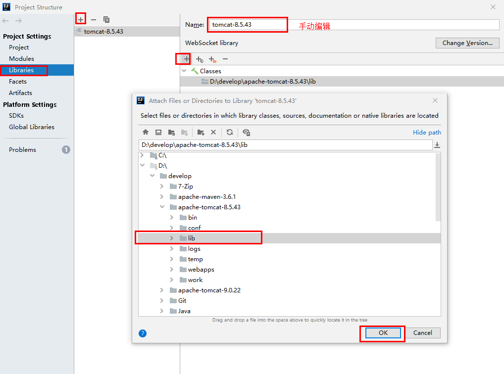3,默认没有加载servlet-api.jar 和 jsp-api.jar ,需要如下图所示手动添加