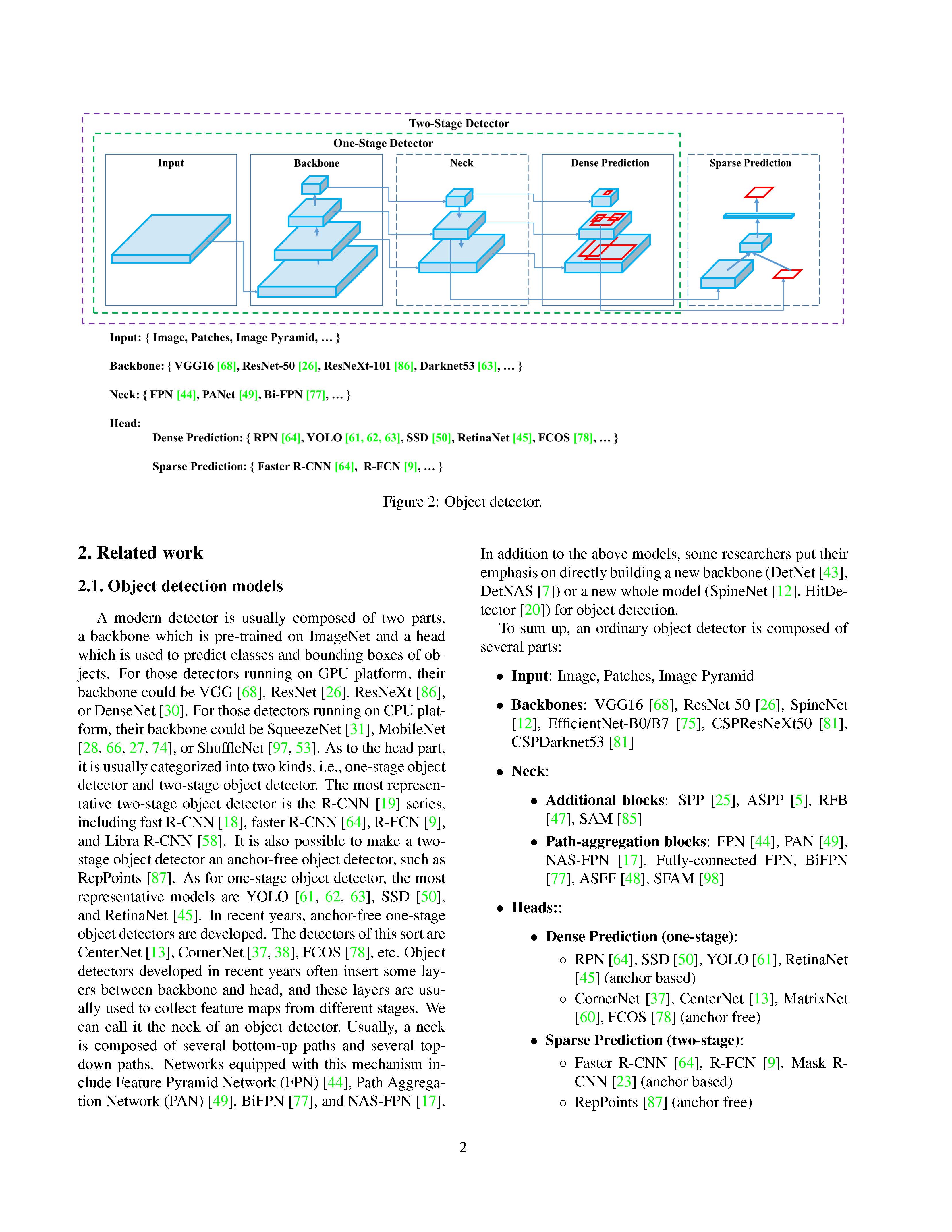 网络主要结构确定了后,下一个目标是选择额外的模块以提升感受野、更好的特征汇聚模块(如FPN、PAN、ASFF、BiFPN)。对于分类而言最好的模型可能并不适合于检测,相反,检测模型需要具有以下特性: