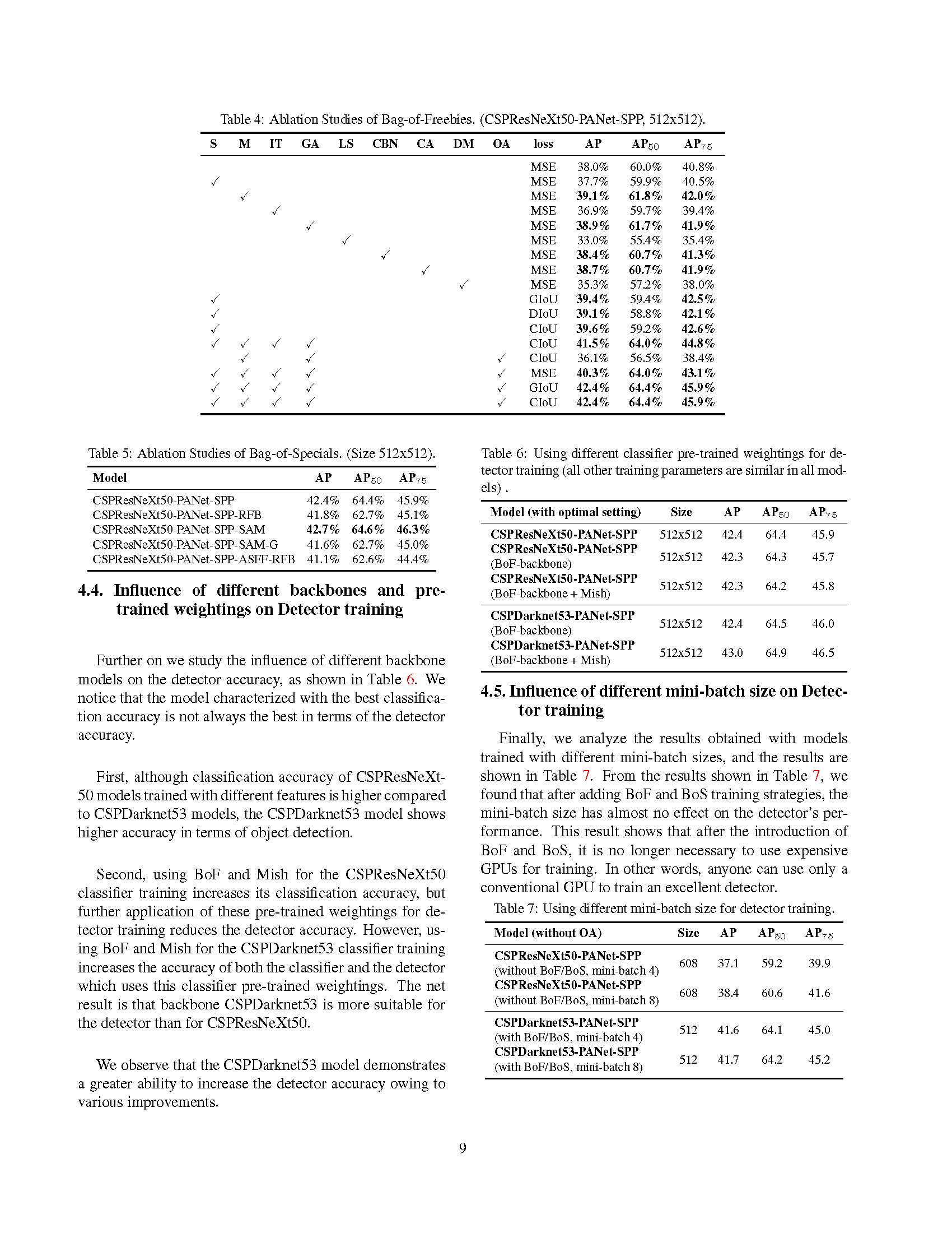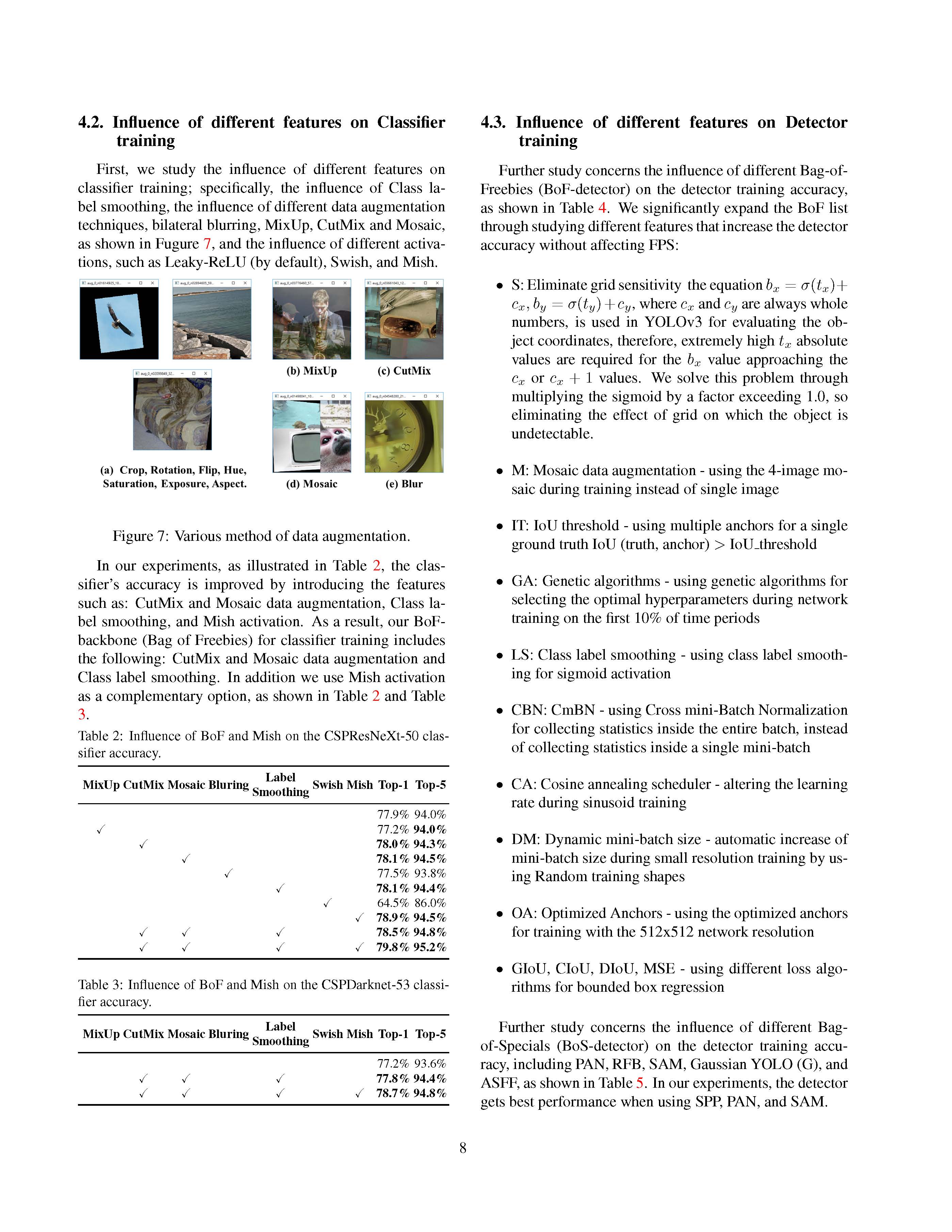 (不会翻译直接上英文)We verify the influence of SOTA bag-of-freebies and bag-of-specials methods of object detection during detector training