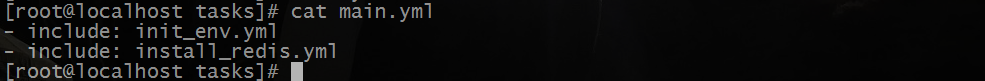 上面的目录架构我们看到tasks下面有三个文件,当我们ansible执行playbook的时候,动作就会到tasks目录下面去找,他默认会第一个找main.yml